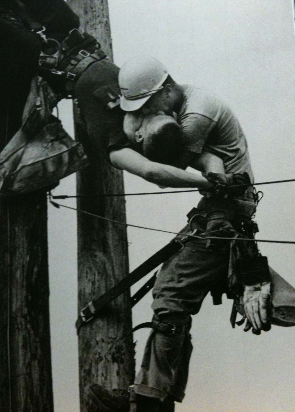 E This 1967 Award Winning Photo Entitled Kiss Of Life Shows Two Power Linemen Randall Champion And J D Thompson At The Top Of A Utility Pole They Had Been Performing Routine Maintenance